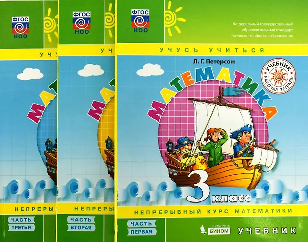 Математика. 3 класс. Учебник. Непрерывный курс математики "Учусь учиться". В трех частях (комплект из трех книг)