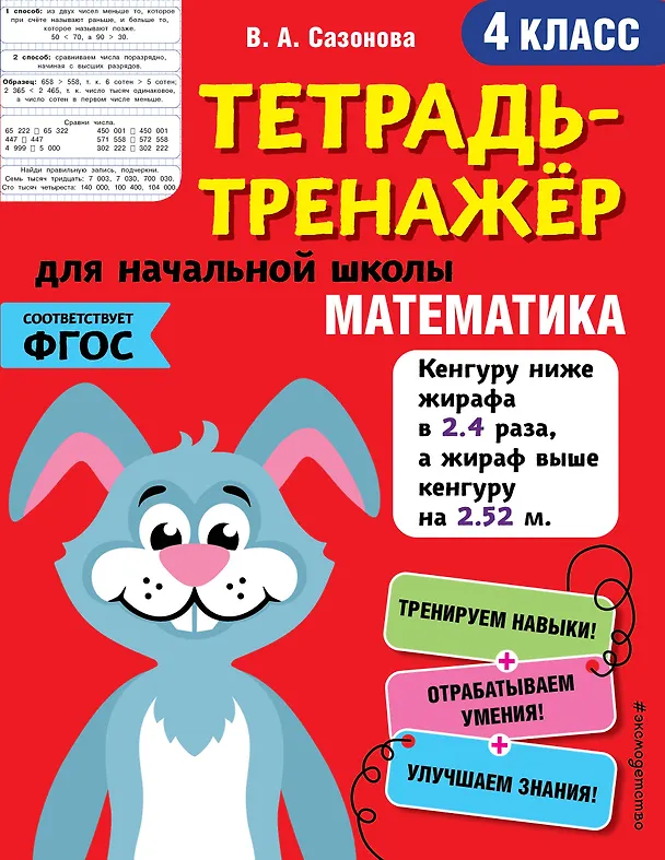 Отличные тетради-тренажеры. Обложка из глянцевого гибкого картона, формат тетрадный. Содержание радует, на мой взгляд, здесь гораздо серьезнее разобрана теория выполнения заданий по этапам, чем в "русском языке". Но! За счёт этого в "математике" меньше практики:( А ведь это именно тренажёр, для теории учебники есть.