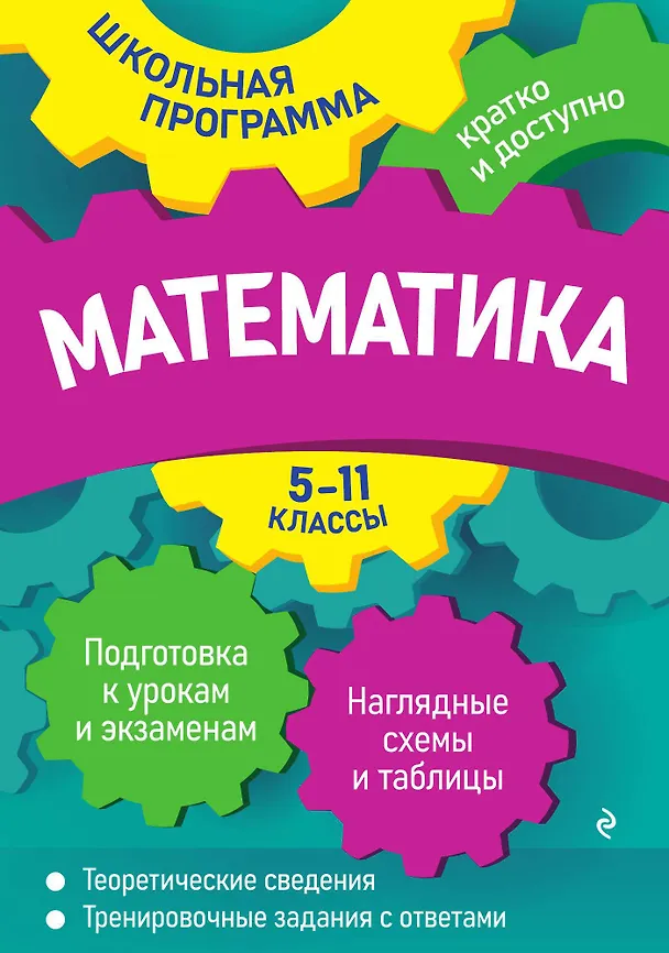 Издание содержит теоретические сведения по школьному курсу математики. Формулы, математические понятия, правила, теоремы и законы сопровождаются большим количеством примеров и рисунков. Для оперативного контроля даны тренировочные задания с ответами. Информация для большей наглядности структурирована в виде схем и таблиц, что позволяет выделить главное, способствует систематизации знаний, лучшему усвоению и запоминанию. Книга окажет помощь старшеклассникам в подготовке к урокам и экзаменам, будет полезна учителям, репетиторам, а также всем, кто интересуется математикой.