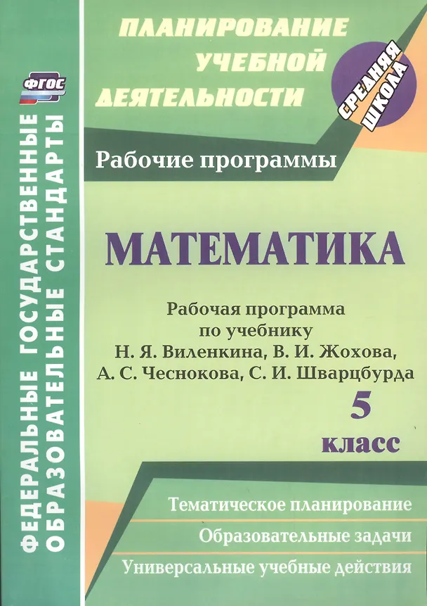 В пособии представлена рабочая программа по математике для 5 класса, составленная в соответствии с основными положениями Федерального государственного образовательного стандарта основного общего образования, планируемыми результатами основного общего образования по математике, отражающая требования Примерной образовательной программы ОУ и ориентированная на работу с учебником Н.Я. Виленкина, В.И. Жохова, А.С. Чеснокова, С.И. Шварцбурда. Программа содержит развернутое календарно-тематическое планирование системы учебных занятий (уроков) и педагогических средств, с помощью которых формируются универсальные учебные действия, спроектированы результаты освоения образовательной программы: личностн