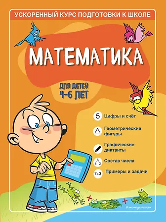 Для того чтобы быстро и качественно подготовить ребёнка к школе по математике, авторы отобрали самые важные и нужные темы, которые необходимо знать при поступлении в учебные заведения: прямой и обратный счёт в пределах 20, сравнение предметов и чисел, знание состава числа, умение решать примеры, составлять и решать неравенства и задачи, в том числе и логические.