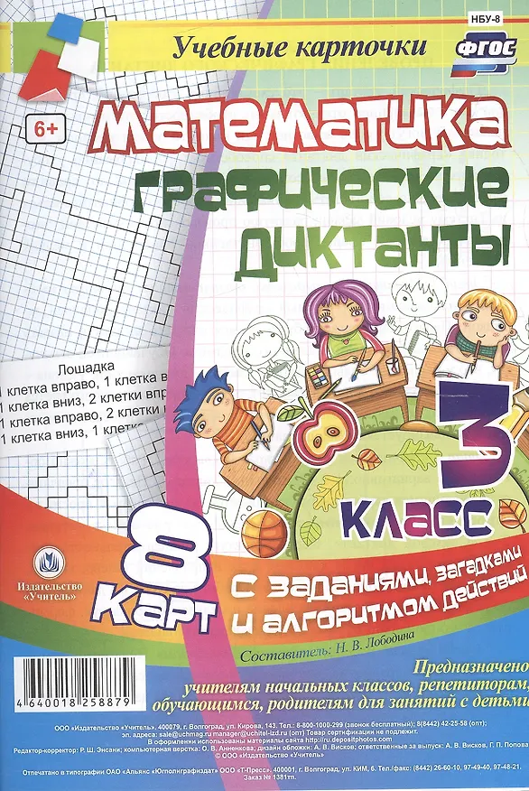 Математика. Графические диктанты. 3 класс. 8 карт с заданиями, загадками и алгоритмом действий. ФГОС