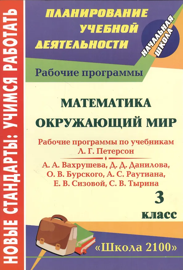 В пособии представлены рабочие программы по математике и окружающему миру для 3 класса, разработанные в соответствии с основными положениями Федерального государственного образовательного стандарта начального общего образования и ориентированные на работу по учебникам J1. Г. Петерсон «Математика» (М.: Ювента, 2010), А. А. Вахрушева, Д. Д. Данилова, О. В. Бурского, А. С. Раутиана «Окружающий мир. Обитатели Земли», А. А. Вахрушева, Д. Д. Данилова, Е. В. Сизовой, С. В. Тырина «Окружающий мир. Мое Отечество» (М.: Баласс, 2010). Программы содержат развернутое тематическое планирование системы учебных занятий (уроков) и педагогических средств, с помощью которых формируются универсальные учебные де