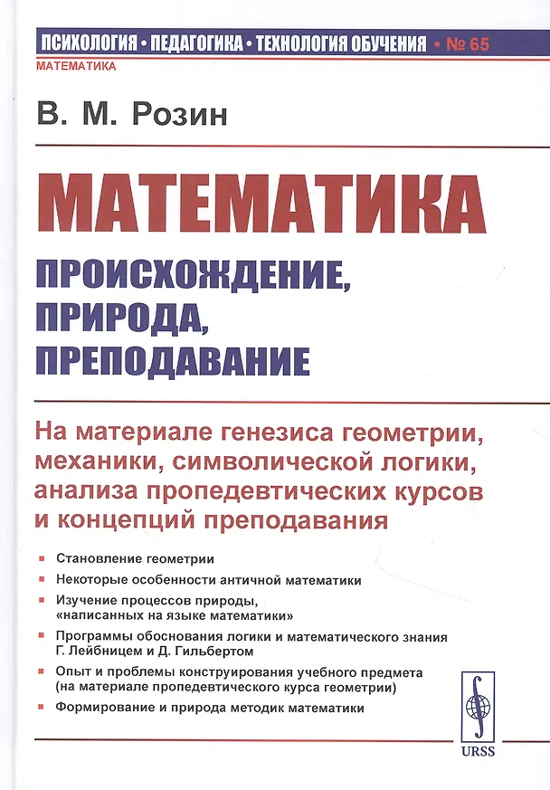 В настоящей книге собраны работы автора, известного российского философа, написанные в разные годы и посвященные вопросам происхождения математики и ее преподавания в курсах начальной школы. Для каждой из них характерен культурно-исторический и методологический подходы и серьезная опора на эмпирический материал. Автор не только объясняет происхождение математики, но и анализирует использование ее построений и знаний в других научных дисциплинах, а также в пропедевтических курсах педагогики. Обсуждает он и три концепции преподавания — имманентного развития, формирования, культурно-исторической среды. Предлагаемая книга дает возможность не только по-новому взглянуть на природу математики, но и