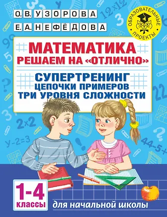 Пособие известных педагогов-практиков, авторов самых издаваемых учебников и учебных пособий в России О.В. Узоровой  и Е.А. Нефёдовой содержит примеры по всем основным темам программы математики начальной школы. Особенностью издания является распределение заданий по трем уровням сложности:  1-й уровень сложности  — вычислить ответ; 2-й  — решить примеры на время;  3-й  — вставить пропущенное в примере число. Решение цепочек примеров — это эффективный тренинг, позволяющий довести до автоматизма вычислительные навыки ребёнка, развивающий память,  сообразительность, способность удерживать и переключать внимание. Пособие будет полезно для работы в классе и самостоятельных занятий дома.