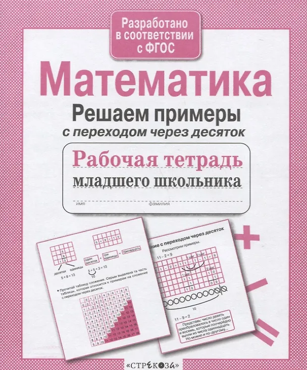 Решение примеров с переходом через десяток обычно вызывает трудности у учащихся младших классов. Поэтому необходимо тщательно отработать навыки решения этих примеров в начале изучения. В нашем пособии ребёнок познакомится с примерами вычислений однозначных и двузначных чисел с переходом через десяток, разовьёт устные вычислительные навыки, научится анализировать примеры, находить правильные ответы и делать выводы. Интересные, разнообразные задания помогут ребёнку легко и без принуждения запомнить алгоритм решения примеров с переходом через десяток. Желаем успеха!