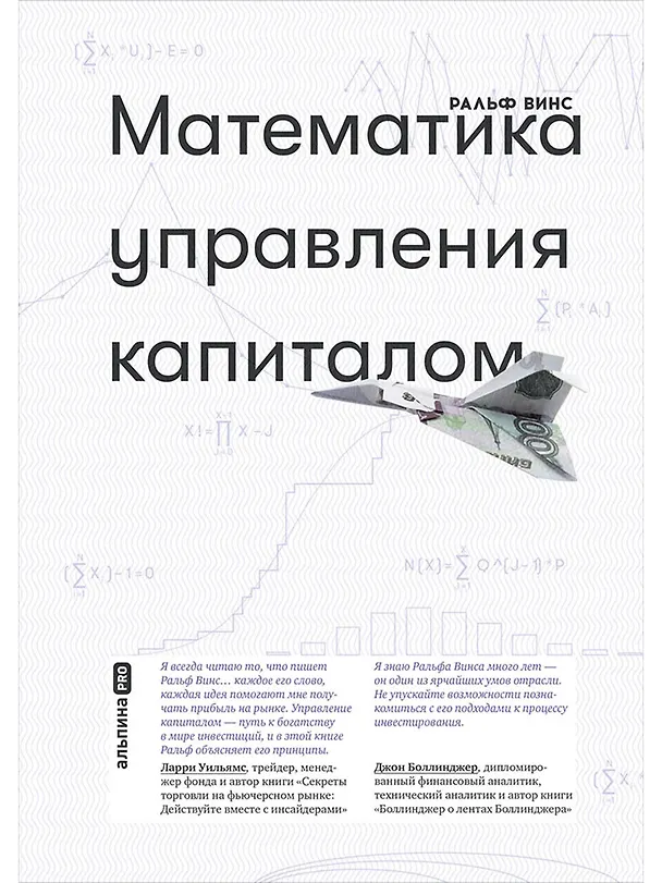 Книга, основанная на теории вероятностей, статистике и современной теории портфеля, рассказывает о том, как использовать различные методы управления капиталом на фьючерсном, валютном, фондовом и других рынках. Концепции, изложенные в этой книге, в большинстве своем просты, как и практические примеры, наглядно иллюстрирующие их использование в торговле. Сочетая практику современной теории портфеля с концепцией оптимального f, автор показывает, как соизмерять ставки и возможные последствия торговых решений. Стратегии, рассмотренные в этой книге, позволяют определять оптимальное количество контрактов для торговли на любых рынках, максимизировать прибыль при торговле с реинвестированием, рассчит