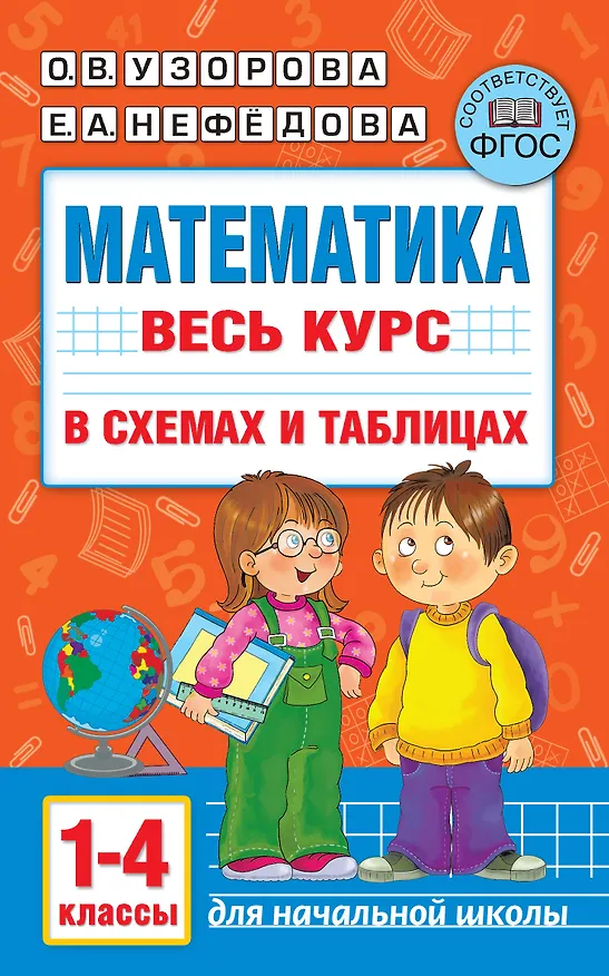 В учебном пособии О. В. Узорова , Е. А. Нефёдовой "Математика. Весь курс начальной школы в схемах и таблицах" все правила по математике представлены в схемах и таблицах, кажой теме даёся подборка примеров и зхадач. Благодаря многообразию интересных упражнений школьники научатся быстро считать, будут заниматься с интересом и удовольствием.