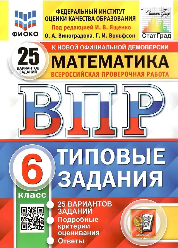 ВПР. Математика. 6 класс. Типовые задания. 25 вариантов заданий. Подробные критерии оценивания. Ответы