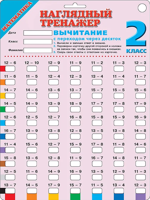 Наглядный тренажер окажется незаменимым помощником при изучении вычитания с переходом через десяток. Пользоваться им очень просто: