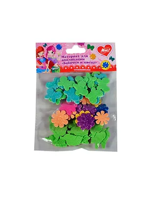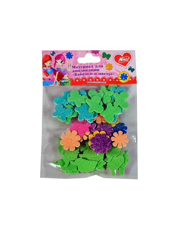Материал для аппл. Бабочки и цветы из EVA с глиттером (MU80027-EVA/WFD) (48шт.) (WINX Club) (упаковка)