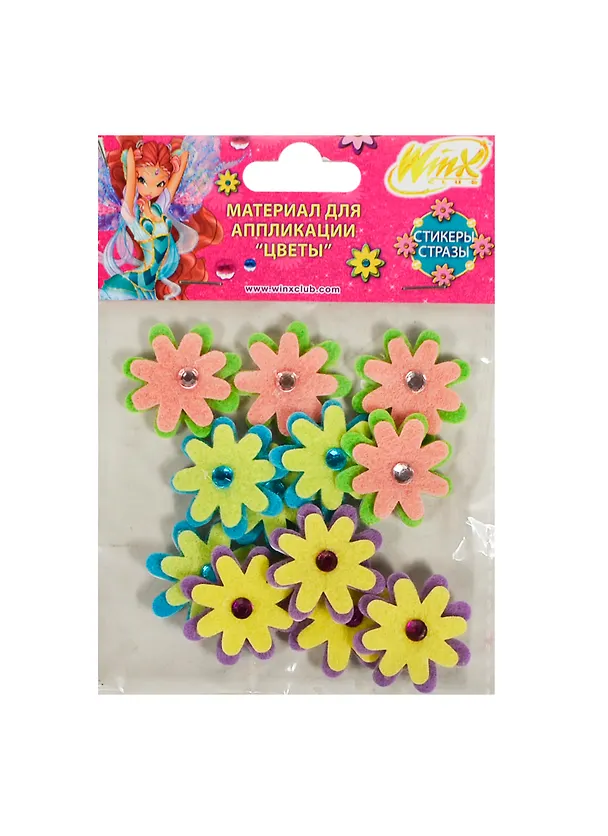 Материал для аппл. Цветы из фетра со стразами (MU80294-f/WMs) (0428124) (12шт) (Winx) (упаковка)