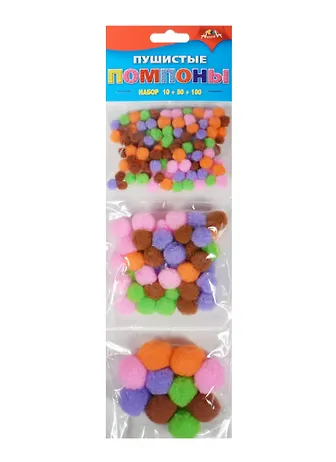 Материалы д/творч. Помпоны пушист. Ассорти (С2579-01) (набор/8мм(100шт.)+15мм(50шт.)+25мм(10шт.)) (3+) (упаковка)
