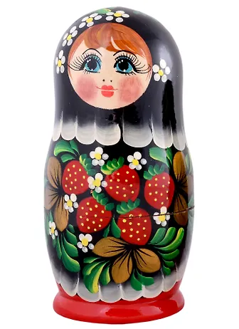 Матрешка 5 в 1 большая (Ягодки, Эскиз 11, Клубничка на черном)