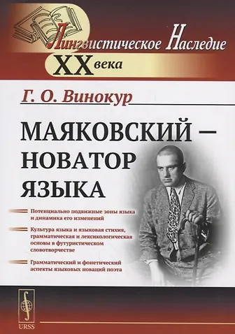 Предлагаемая вниманию читателя книга выдающегося русского филолога Г. О. Винокура (1896--1947) содержит описание потенциально подвижных зон языка, определяющих динамику его изменений. Именно в поэзии общие тенденции развития языка проявляют себя быстрее и явственнее, чем в других его сферах. Автор вводит свои понятия «культуры языка» и «языковой стихии», вскрывает в футуристическом словотворчестве не сколько лексикологическую, сколько грамматическую основу. Анализ художественной функции языкового новаторства Маяковского включает рассмотрение новаций поэта с точки зрения фактов грамматики и фонетики.