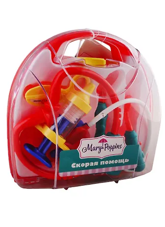 Медицинский набор «Скорая помощь» в чемоданчике от ТМ Mary Poppins. В комплект входят следующие игрушки: фонендоскоп, шприц, безопасные ножницы, лоток для инструментов, пинцет, скальпель и зеркальце.