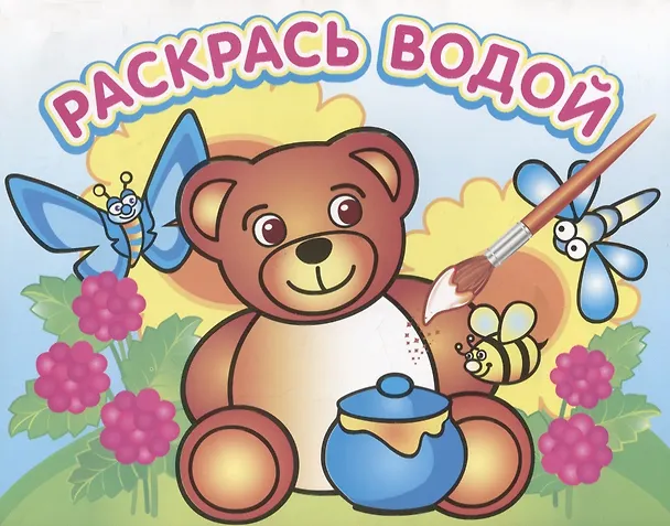 На ваших глазах без красок и фломастеров черно-белые рисунки превратятся в яркие и цветные картинки. Для этого достаточно мокрой кисточкой закрасить контур рисунка. Пусть рисование водой принесет вам радость и хорошее настроение!