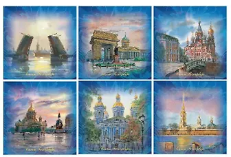 МедВс Набор подставок 6шт. АКВАРЕЛЬ-2 (Синяя рамка размыв) в блистере