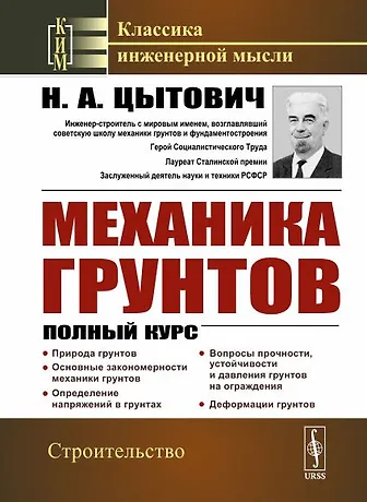 В настоящей книге подробно освещены важнейшие вопросы механики грунтов, представляющие теоретический и практический интерес для строительства, причем механика грунтов излагается как особая отрасль науки. В книге содержатся данные экспериментальных и теоретических исследований в соответствии с запросами практики. Основное внимание уделено систематичности и четкости изложения отдельных вопросов механики грунтов, ясности трактовки тех или иных задач, с тем чтобы сделать книгу доступной наиболее широкому кругу специалистов. Для облегчения расчетов книга иллюстрирована вспомогательными таблицами и численными примерами, что дает возможность широко применять излагаемые методы исследований в инженер