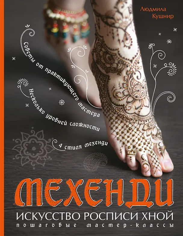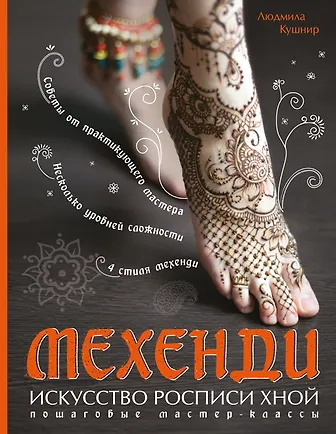 Авторские мастер-классы в новой книге по росписи тела хной: узнайте что обозначают символы, как правильно наносить рисунок, как сделать пасту в домашних условиях и многое другое. Автор поделится тонкостями этого искусства и расскажет историю мехенди. Вы убедитесь, что это не сложно, главное ваш энтузиазм и немного практики!