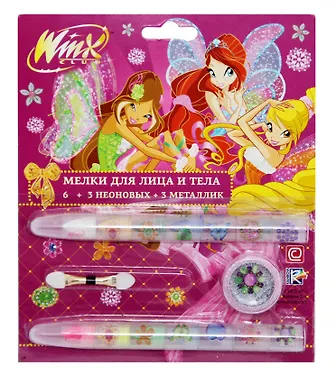 Мелки для тела 12цв (03цв неон, 03цв металлик) с блестками, аппликатор, блистер, WINX