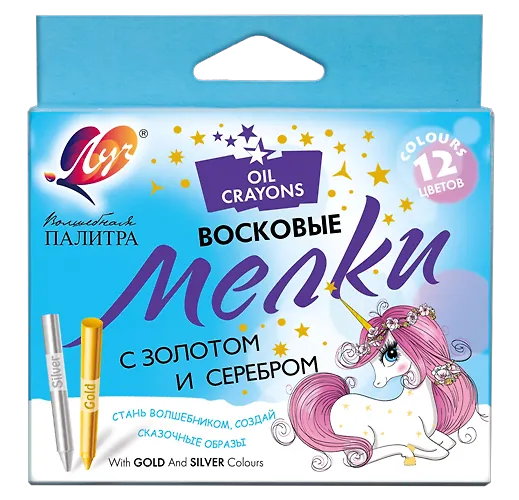 Мелки восковые, рисуют хорошо, мягкие, не требуют усилий, насыщенные цвета. Очень хорошо, что есть золотой и серебряный цвета. Нет бумажной обертки на карандашах. Упакованы в компактную коробочку, можно их брать с собой. Сами карандаши небольшие, их удобно держать в руке. Качество мелков хорошее, поэтому рекомендую для покупки.