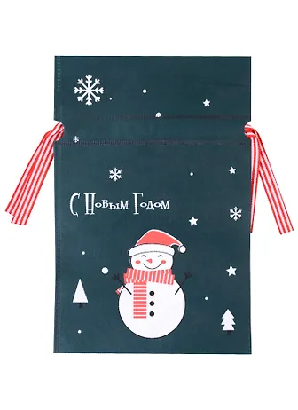 Этот новогодний подарочный пакет с завязками - отличный выбор для праздничного сезона! Он выполнен из прочного материала, что делает его эстетически приятным в плане рассмотрения. Рисунок на пакете добавляет атмосферу праздника и создает ощущение уюта. Поэтому скажу, что это отличный подарочный мешок, очень понравился! Среднего размера, в принципе может войти даже футболка. Скетчбук 15х15 хорошо вместился и все закрылось, включая и другие подарки
