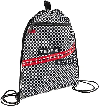 Прикольный принт, и прикольные фразы на мешке для обуви.