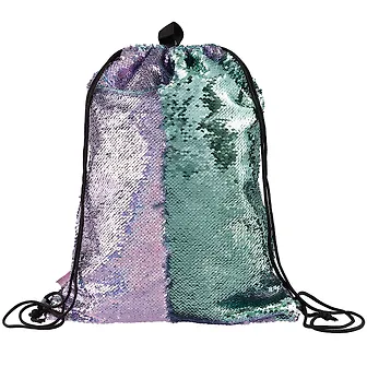 Мешок дорожный арт.46988/25 СИРЕНЕВЫЙ+МЯТНЫЙ (36х48 см, одно отделение, полиэстер, расшитый двусторонними ПВХ-пайетками, светоотражающие элементы, ручка-петля для переноски, шнурок, ПЭТ-пакет)