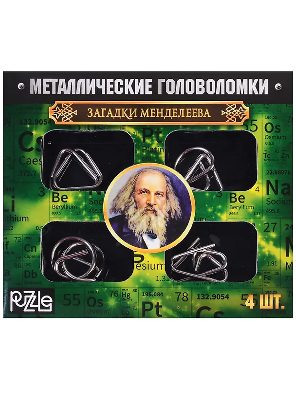 Металлические головоломки Загадки Менделеева (2528227) (набор/4шт.) (коробка)