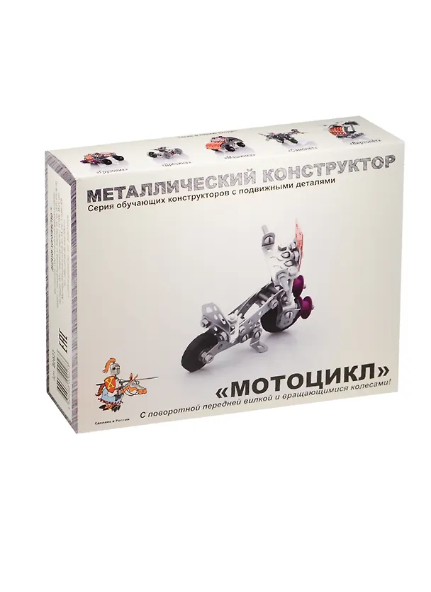 Собирается конструктор от известной русской компании «Десятое королевство» с помощью специальной отвертки-ключа, который входит в набор. В комплекте есть подробная инструкция с пошаговым описанием действий. В итоге, у ребенка получится небольшой мотоцикл с поворотной передней вилкой и вращающимися колесами. Его можно использовать в различных сюжетных играх, развивая при этом фантазию и учась сочинять. Конструктор идеально подходит для уроков труда у младших школьников.