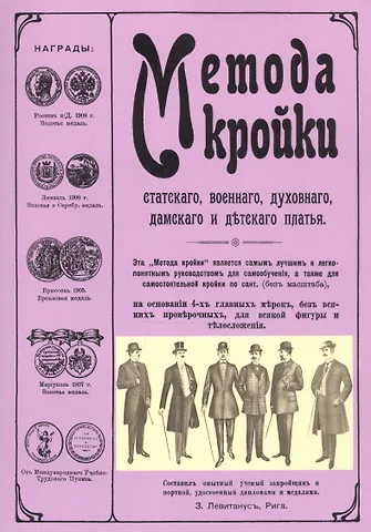 .325 илл. Метода кройки является самым лучшим и легкопонятным руководством для самообучения, а также для самостоятельной кройки по сантиметру (без масштаба), на основании 4-х главных мерок, без всяких проверочных, для всякой фигуры и телосложения. Составитель опытный ученый закройщик и портной, удостоен. дипломами и медалями З.Левитанус