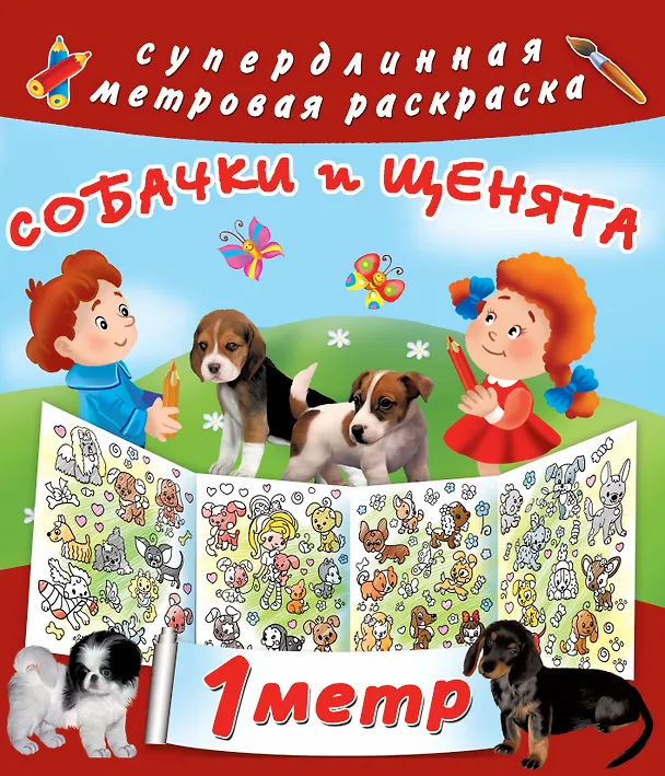"Собачки и щенята" - супердлинная метровая раскраска, которой обрадуется каждый ребенок. Так здорово раскрашивать забавных песиков цветными карандашами, фломастерами, маркерами, выбирая цвета для каждого рисунка. Для младшего школьного возраста.