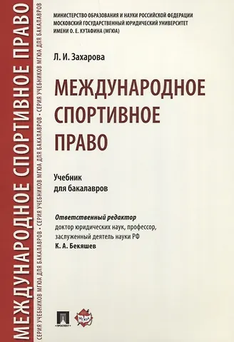 Учебник по международному спортивному праву подготовлен в соответствии с федеральным государственным образовательным стандартом высшего образования по направлению подготовки 40.03.01 «Юриспруденция» (квалификация (степень) «бакалавр») и рабочей программой учебной дисциплины «Международное спортивное право», одобренной кафедрой международного права Московского государственного юридического университета имени О. Е. Кутафина (МГЮА) в январе 2017 г. Учебник состоит из 17 глав, соответствующих темам рабочей программы учебной дисциплины. В нем раскрываются понятие, предмет, история, источники, субъекты, специальные принципы международного спортивного права, освещается процесс регулирования междуна