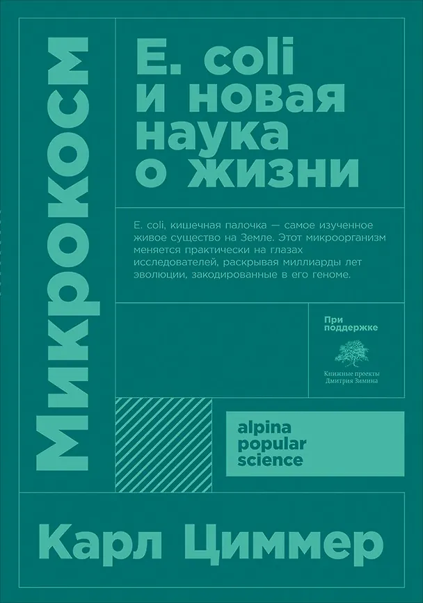 Интересно, что E. coli — общественный микроб. Автор проводит удивительные и тревожные параллели между жизнью E. coli и нашей собственной жизнью. Он показывает, как этот микроорганизм меняется практически на глазах исследователей, раскрывая перед их изумленным взором миллиарды лет эволюции, закодированные в его геноме.