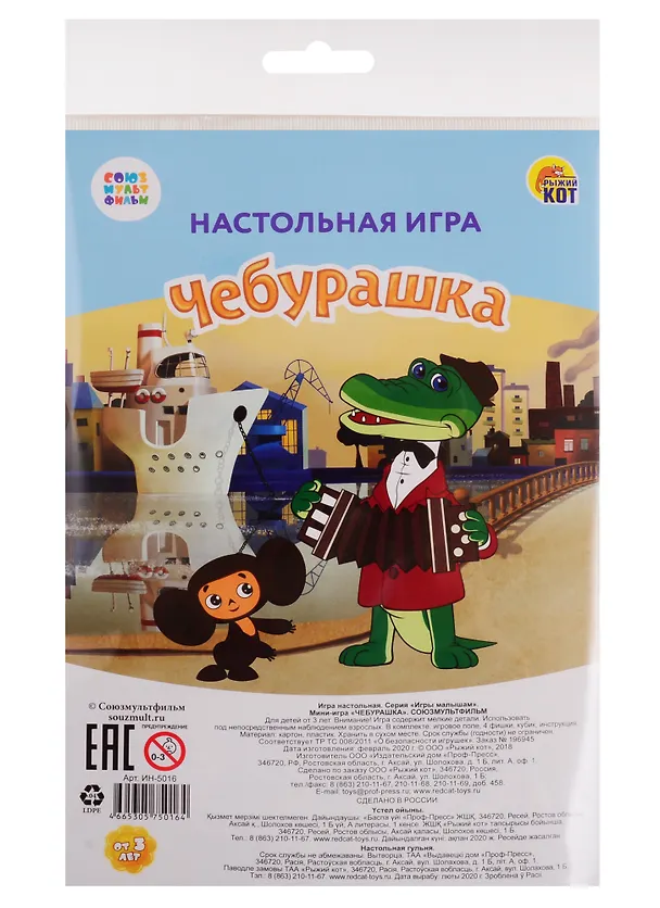 Настольная игра. Союзмультфильм. Мини-игра "Чебурашка". В набор входит : само поле для игры, кубик,который нужно кидать,чтобы узнать свой ход и четыре разноцветных фишек. Игра интересная, нашим детям очень понравилась. Играли с удовольствием. Спасибо за товар.