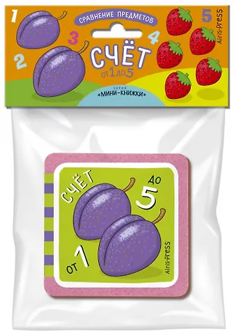 Книжка компактного формата для развивающих занятий с детьми от 1 года. Научит считать до 5. На мягких страницах яркие, узнаваемые и понятные ребёнку образы и совсем немного текста. Сделана из экологичного и безопасного материала EVA*, удобно ложится в детскую руку. Отлично подходит для познавательных занятий с самого раннего возраста.