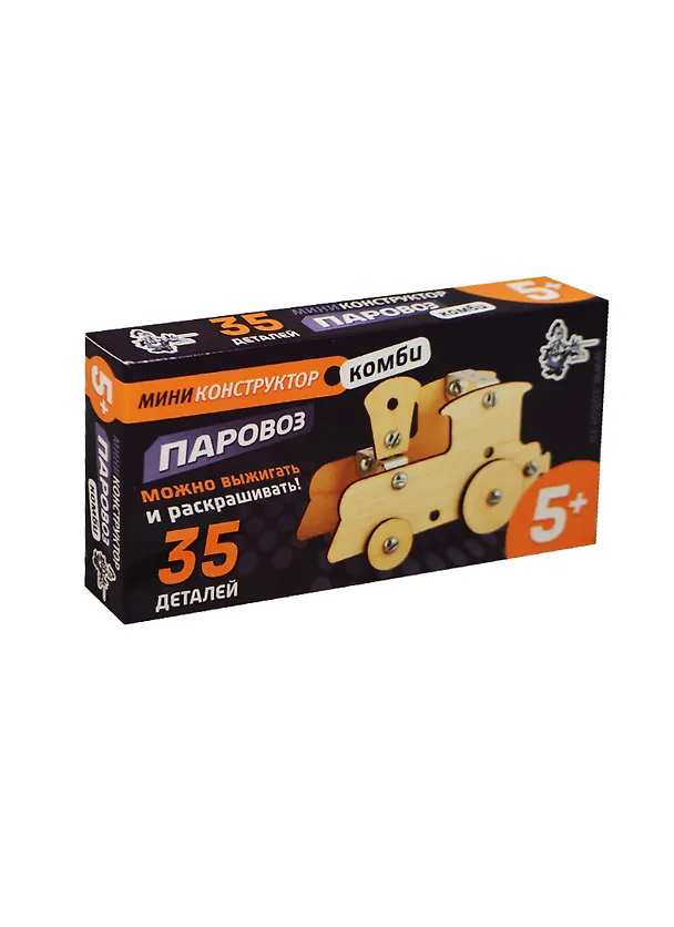 Мини-Конструктор из дерева и металла Паровоз (01621) (35 дет.) (+ключ-отвертка) (Комби) (5+) (коробка)