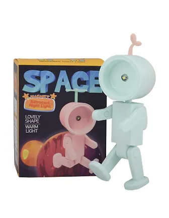 Очаровательная мини‑лампа в виде робота мятного цвета — сочетание функционального освещения и оригинального декора. Компактный размер и дружелюбный дизайн делают её отличным решением для детской комнаты, рабочего стола или любого пространства, где требуется мягкий свет и нотка технологичной эстетики.