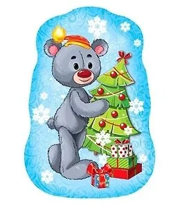 Мини открытка одинарная Мишка в красной шапочке 5-02-0044