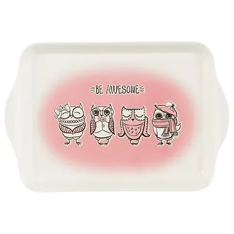 Поднос неплохой.Сделан из пластика,так что нужно быть с ним аккуратней,ибо у меня он сломался в первый же день.Рисунок красивый,со временем не слазит,остается таким же ярким.Поднос очень маленький,максимум что вмещается в него-одна небольшая кружка.В принципе поднос неплохой,но очень недолговечный,а еще на нем не отрываются следы