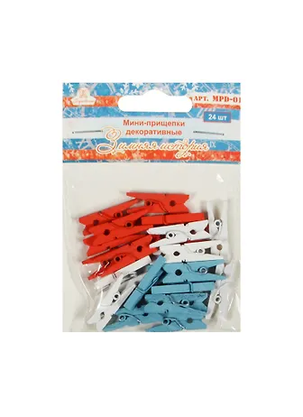 Мини-прищепки декоративные Зимняя история (MPD-01) (2,5х0,3х0,9см) (24шт.) (Рукоделие) (упаковка)