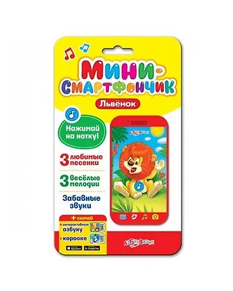 Этот мини-смартфончик идеально подойдёт самым маленьким благодаря небольшому размеру и закруглённым уголкам. Малыш сможет подружиться с озорным Львёнком и послушать любимые песенки и мелодии: «Песня Львёнка и Черепахи», «Весёлая карусель», «Песенка о лете», «Чунга-чанга», «Енка», «Какой чудесный день».