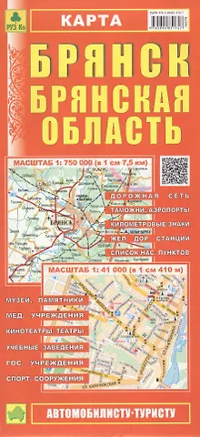 Двусторонняя полноцветная карта. План г.Брянска в масштабе1:41 000 . Карта Брянской области, масштаб 1:750 000. Складная.