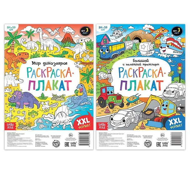 Мир динозавров и транспорта. Набор раскрасок-плакатов (комплект из 2 книг)
