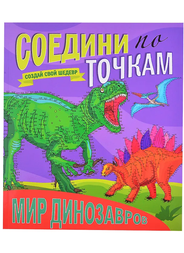 Мир динозавров. Серия антистресс-раскрасок от Проф-Пресс "Соедини по точкам".16 доисторических животных на страницах раскраски. Предлагается нарисовать рисунок, соединяя точки по порядку номеров. Это помогает расслабиться, отвлечься. На другой стороне листа информация о динозавре.