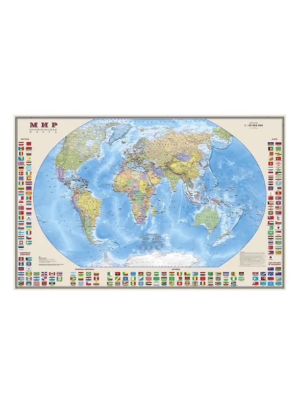 Мир Политическая карта с флагами (1:30 млн) (134х87 / 122х79) (829) (рулон)