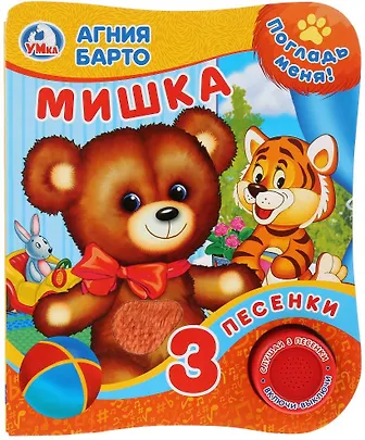 .На каждой страничке красивые иллюстрации и любимые стихи Барто. Малыш будет с удовольствием рассматривать яркие страницы с красочными картинками, читать стихи, слушать песни, подпевать и трогать тактильные элементы. Ребёнок легко освоит включение звука: по нажатию на кнопку начинает проигрываться песенка, при втором нажатии звук выключится. Нажав на кнопку ещё раз ребёнок, услышит следующую песню. Композиции исполняются профессиональными артистами. Книжка сдела