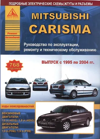 Mitsubishi Carisma c бензиновыми 1,6 л (4G 92); 1,8 л (4G 93) и дизельными двигателями 1,9 л. (F8Q); 1,9 л. (F9Q). Руководство по эксплуатации, ремонту и техническому обслуживанию.