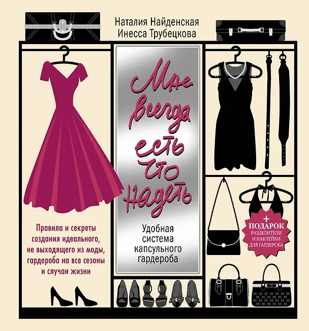 Мне всегда есть что надеть. Книга классная! Наконец то перестала покупать кучу ненужных вещей, и научилась комбинировать. И перестала в магазинах снимать стресс! Естественно, в ней описано, как должно быть в идеале, у каждого свои отклонения в разные стороны, но основные моменты понять расписаны. Порядок в гардеробе обеспечен и деньги в кошельке еще останутся. Наталия Найденская, Инесса Трубецкова еще дают советы, что и когда лучше всего покупать, как ходить в магазин более целенаправленно (большой плюс тут в системе капсульного гардероба, идешь покупать уже для конкретной капсулы). Еще один плюс- нет навязчивой рекламы и лишней воды- все только по делу!